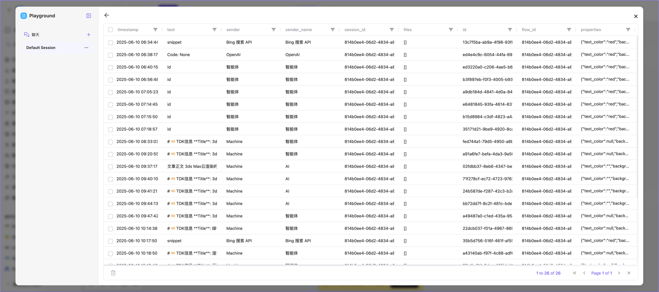 MySessionID。 - 现在,一旦您在 试运行 中发送新消息,您应该在 消息日志 面板中看到创建了新的记忆。